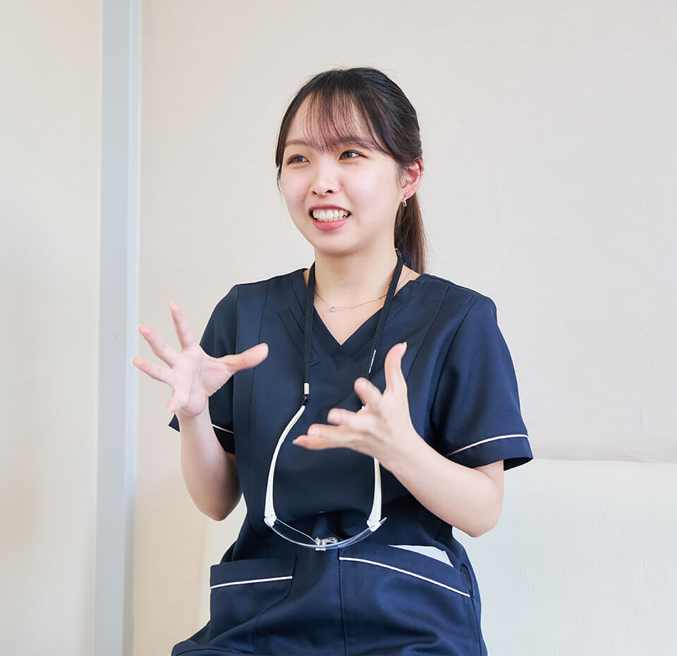 患者様から「ありがとう」と言われた時や、治療のサポートがスムーズにできた時にやりがいを感じます。頼りがいのある理事長のもと、私たちと一緒に患者様に安心を与えられるサポートをしていきませんか?