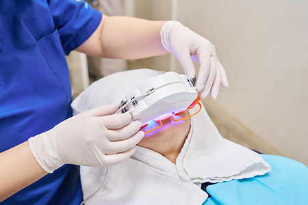 さまざまなホワイトニング剤の中から、当グループ院ではティオンホワイトニングを採用しています。高いホワイトニング効果が期待できる薬剤でありながら、体に優しい低刺激を両立しているのが大きな特徴です。歯科医院で行うホワイトニングでは、ブリリカビアンコやPBMヒーリングなどのLED照射機を使うことで、より短時間で高い効果が期待できます。